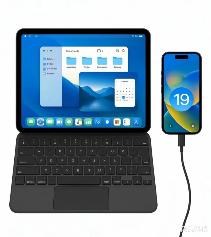 并且连接妙控键盘后,iPadOS 19 的顶部会显示类似于 macOS 上一样的菜单栏,让它的体验更像笔记本电脑。